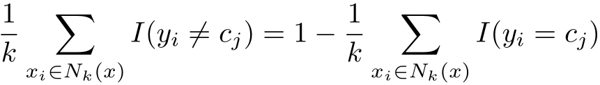 对给定的实例 x ∈ X ,其最近邻的 k 个训练实例点构成集合 N k ( x )。如果涵盖 N k ( x )的区域的类别是 c j ,那么误分类率是