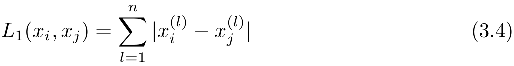 当 p =1时,称为曼哈顿距离(Manhattan distance),即