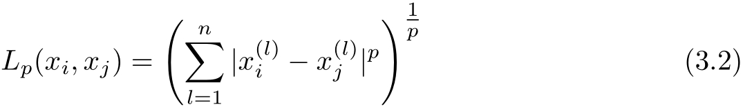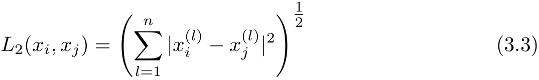 这里 p ≥1。当 p =2时,称为欧氏距离(Euclidean distance),即