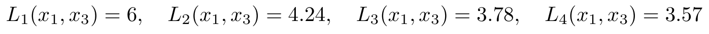 例3.1 已知二维空间的3个点 x 1 =(1,1) T , x 2 =(5,1) T , x 3 =(4,4) T ,试求在 p 取不同值时, L p 距离下 x 1 的最近邻点。