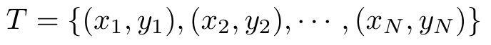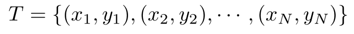 其中( x i , y i ), i =1,2,…, N ,称为样本或样本点。 x i ∈ X ⊆ R n 是输入的观测值,也称为输入或实例, y i ∈ Y 是输出的观测值,也称为输出。