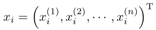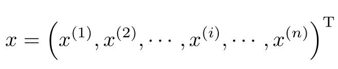 x ( i ) 表示 x 的第 i 个特征。注意 x ( i ) 与 x i 不同,本书通常用 x i 表示多个输入变量中的第 i 个变量,即