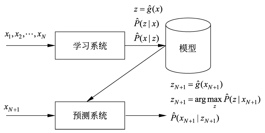 监督学习分为学习和预测两个过程,由学习系统与预测系统完成。在学习过程中,学习系统利用给定的训练数据集,通过学习(或训练)得到一个模型,表示为条件概率分布