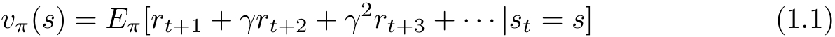 价值函数(value function)或状态价值函数(state value function)定义为策略 π 从某一个状态 s 开始的长期累积奖励的数学期望: