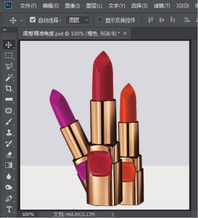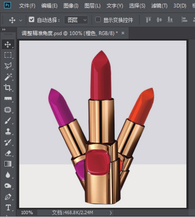 第4步: 重复以上步骤,将右侧的橙色口红调整角度为25度,最终效果如图2-22所示。