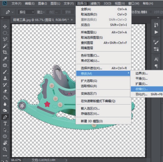 第2步: 选择“选择”|“修改”|“收缩”菜单项,如图3-51所示。
