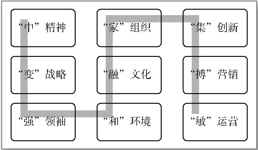 ☆“融”的文化:个人价值与时代共鸣。企业文化融入强烈的企业家色彩和浓厚的时代辐射,管理实践与企业的使命、愿景、价值观的元素相容,焕发旺盛的生命力。