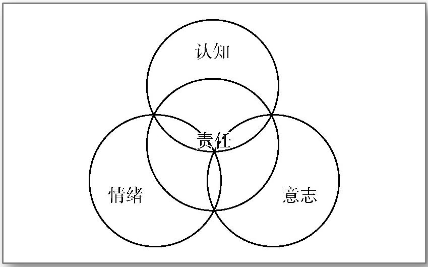 2)强调四元机制行为动力学。与普通心理学的“知情意”三元素相比,管理心理学增加了“责任”这一工作背景的重要因素,即以认知、情绪、意志、责任作为管理心理学的四元核心要素和行为特征。注重管理行为的认知元素、情绪特征、意志行动和责任机制。图1.3是管理心理学“知情意责”四元要素,形成四元行为动力学。我们研究提出,责任要素与知情意三要素相交叉,既包含责任认知与价值取向,也蕴含责任情感与激情动力,又具有责任意志与担责行动。责任元机制是传统知情意元要素基础上更为目标导向的高阶行为动力特征,对于复杂、动态情境下的事业主导、创新驱动和创业精神具有高解释力。