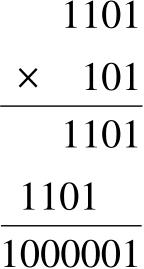即(1101) 2 ×(101) 2 =(1000001) 2 。