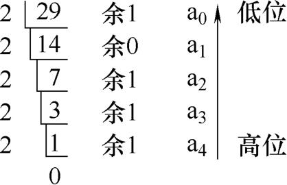 例如,将十进制数(29) 10 转换成二进制数,方法为