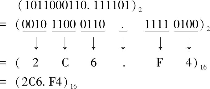 例如,将二进制数(1011000110.111101) 2 转换为十六进制数,方法为