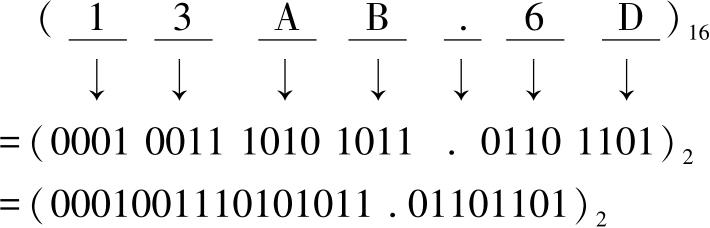 例如,将十六进制数(13AB.6D) 16 转换成二进制数,方法为