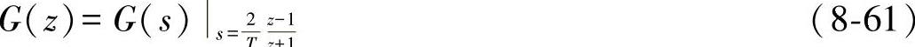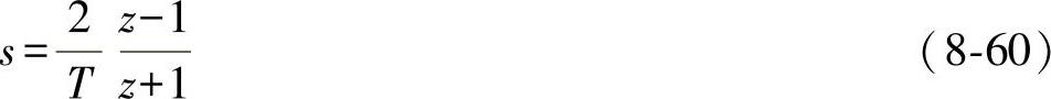 式(8-60)的双线性变换又叫作图斯汀(Tustin)变换,它是最常用的一种离散化方法。
