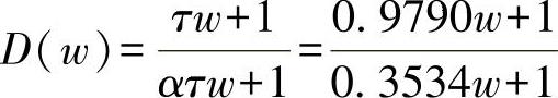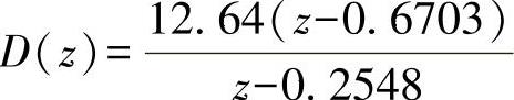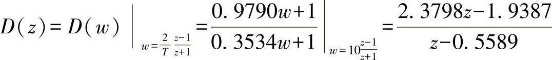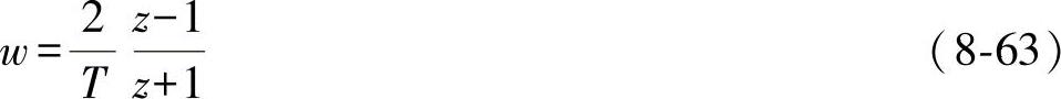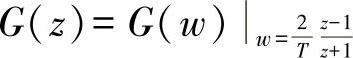 4)通过式(8-63)的双线性变换公式将数字控制器的 w 域传递函数 D ( w )变换为脉冲传递函数 D ( z ),即