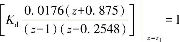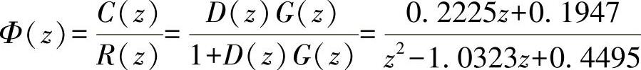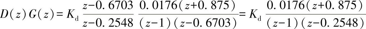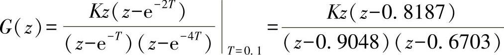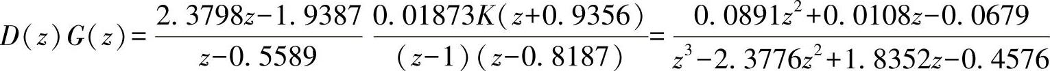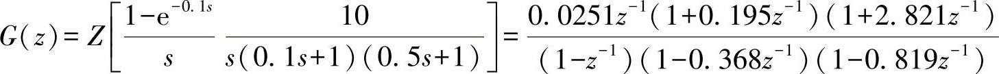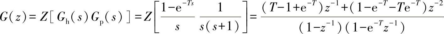 2)综合数字控制器。受控对象与零阶保持器串联的脉冲传递函数为