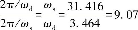 当采样周期 T =0.2s时,相应的采样频率 ω s =2π /T =31.416rad/s。于是在每个阻尼振荡周期里采样的次数为