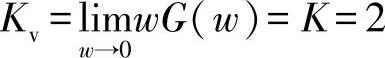 2)根据稳态性能指标的要求确定系统的开环增益。将 w =j ν ( ν 表示虚频率)代入 G ( w )中,并画出 G (j ν )的伯德图。从伯德图上读取原系统的性能指标(如相位裕度和增益裕量)。