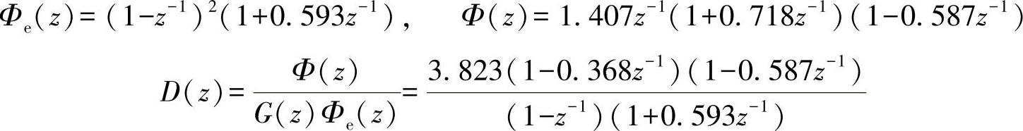 2)最少拍无波纹控制系统的设计。按式(8-75)和式(8-76)选择 Φ ( z )和 Φ e ( z ):