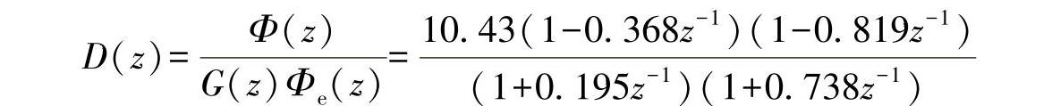 可知,对 G ( z )的不稳定零点可以由 Φ ( z )的零点去对消,对 G ( z )的不稳定极点可以由 Φ e ( z )的零点去对消,这就可以避免在 D ( z )中存在这些不稳定零极点。另外,当 G ( z )含有延迟因子 z -1 时,会使 D ( z )中出现超前因子 z ,这在物理上是无法实现的,要求 Φ ( z )也含有延迟因子 z -1 进行补偿。