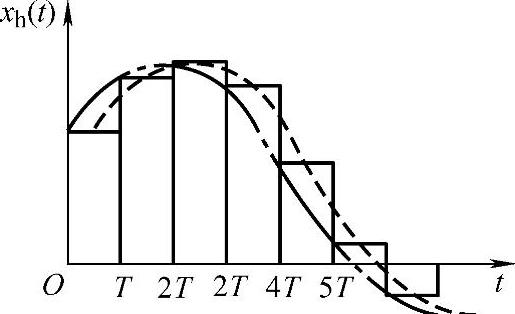 3)时间滞后特性。如果把零阶保持器输出的阶梯信号 x h ( t )的中点连接起来,如图8-8中的虚线所示,则可以得到与连续信号 x ( t )形状一致但在时间上滞后 T/ 2的曲线 x ( t - T/ 2),相当于给系统增加了一个延迟时间为 T/ 2的延迟环节。可见,零阶保持器的引入,使系统总的相角滞后增大,对系统的稳定性不利,这与零阶保持器的相角滞后特性是一致的。