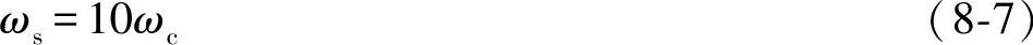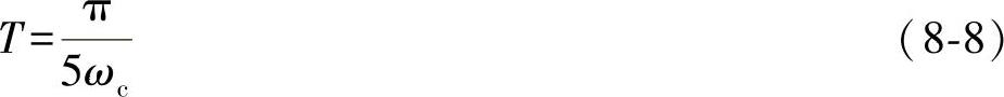 对于伺服系统,采样周期的选取在很大程度上取决于系统的性能指标。从频域性能指标来看,控制系统的闭环频率响应通常具有低通滤波特性。当输入信号的频率高于其闭环幅频特性的带宽角频率 ω b 时,信号通过控制系统将会很快地衰减,因此可认为通过系统的控制信号的最高频率分量为 ω b 。一般认为,开环幅频特性的截止频率 ω c 与闭环幅频特性的带宽角频率 ω b 比较接近,近似有 ω c ≈ ω b 。这就是说,通过伺服系统的控制信号的最高角频率分量为 ω c ,超过 ω c 的频率分量通过控制系统时将被大幅度衰减掉。根据工程实践经验,伺服系统的采样角频率 ω s 可近似选为