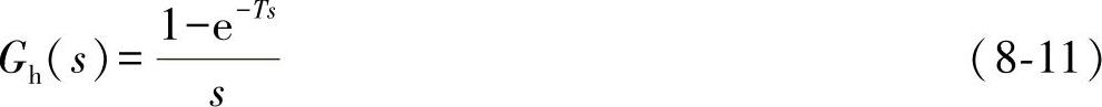 由零阶保持器的外推作用可知,如果给它输入一个理想单位脉冲 δ ( t ),则其单位脉冲响应 g h ( t )是幅值为1,持续时间为 T 的矩形脉冲,并可表示为两个单位阶跃函数的叠加