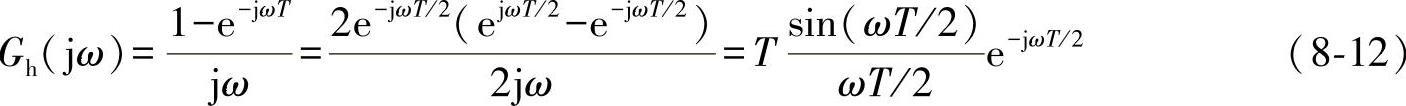 在式(8-11)中,令 s =j ω ,得零阶保持器的频率特性为