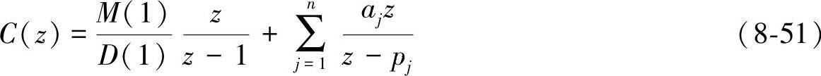 当 r ( t )=1( t )时,有 R ( z )= z/ ( z -1),则由式(8-53)求得