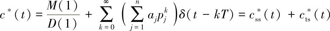 当系统的输入函数为单位脉冲函数时,有 r ( t )= δ ( t ), R ( z )=1,则 C ( z )可展开为
