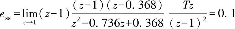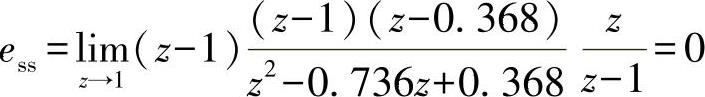 可以求得系统的闭环极点为 z 1,2 =0.368±j0.482,全部位于 z 平面的单位圆内,系统稳定。因此可以应用终值定理求稳态误差。