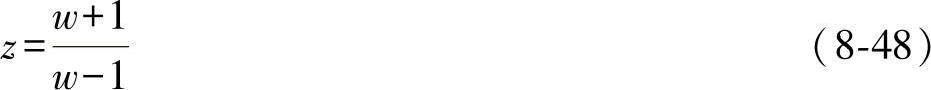 令复变量 z = x +j y 和 w = u +j v ,代入式(8-49),得