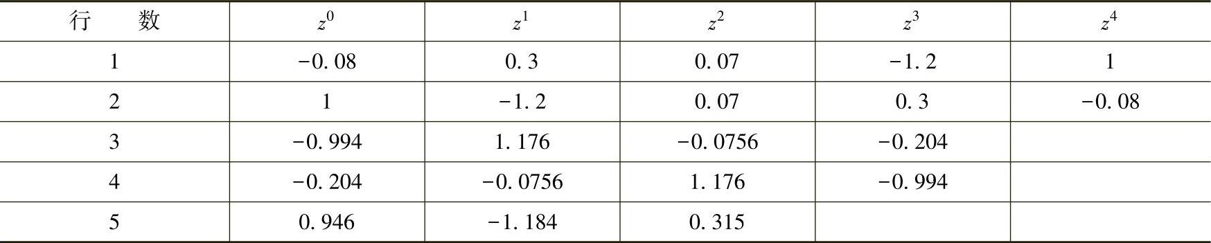 利用特征方程的系数构造(2 n -3)行、( n +1)列朱利阵列表,见表8-4。