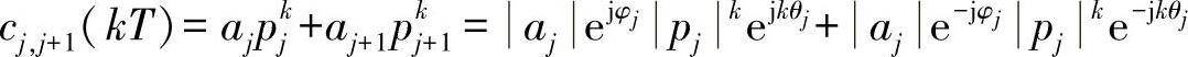1)若| p j |<1,共轭复数极点位于 z 平面的单位圆内,瞬态响应为衰减振荡的脉冲序列,振荡角频率为 θ j /T 。复数极点越靠近原点,瞬态响应衰减越快。