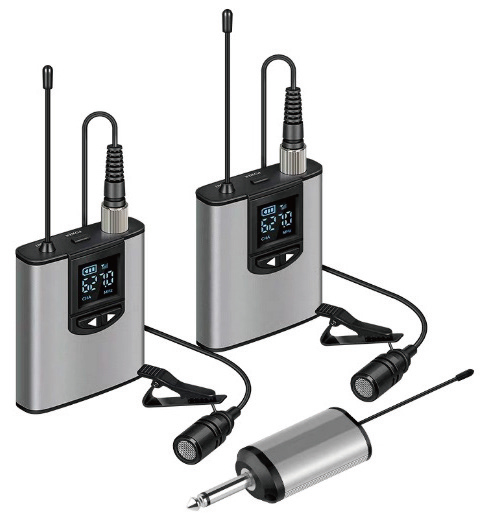 无线麦克风主要是通过接收器与发射器之间的天线接收声音信号,通常会配备独立的电源,可以进行长距离无线声音传输,如图2-8和图2-9所示。
