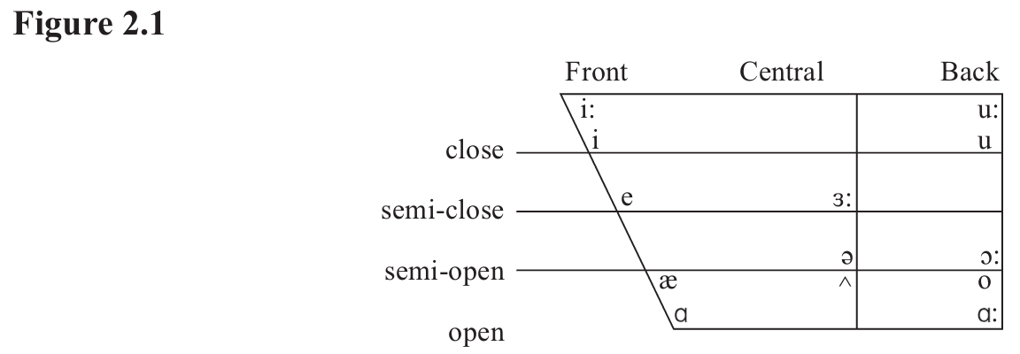 (4)音段分为辅音和元音。发音时气流在声道某处受阻的音叫辅音。气流不受阻的音叫元音。[j]和[w]两音具有元音的发音特征却承担辅音的功能(只能出现于元音之前),因此被称为半元音或半辅音。