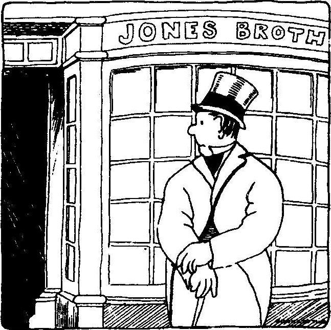 于是医生付了酒钱,他们离开桌子,一路朝那座教堂走去。可是在到达那里之前,要经过几家店。医生很快就停了下来。