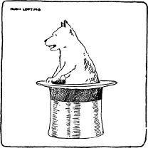 “我把大礼帽放在路边的石头上,钻到帽子里面,开始汪汪叫起来,要多响有多响。行人很快就停下来,纳闷这是怎么回事。我继续叫,很可惜我没有一面鼓,我需要的正是一面鼓。接着我从大礼帽里出来,向观众鞠躬,开始我的表演。我蹲着举起前脚装出乞讨的样子,用前腿倒立、翻跟头,等等。我演得跟那卖艺人一样好——实际上比他更好。