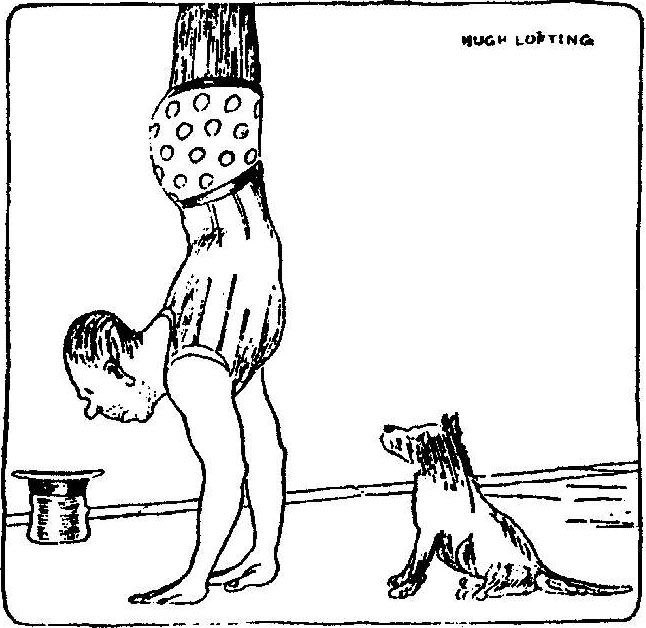 “我把大礼帽放在路边的石头上,钻到帽子里面,开始汪汪叫起来,要多响有多响。行人很快就停下来,纳闷这是怎么回事。我继续叫,很可惜我没有一面鼓,我需要的正是一面鼓。接着我从大礼帽里出来,向观众鞠躬,开始我的表演。我蹲着举起前脚装出乞讨的样子,用前腿倒立、翻跟头,等等。我演得跟那卖艺人一样好——实际上比他更好。
