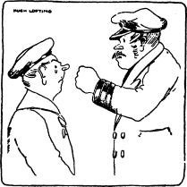 “天黑以后,他朝海滩上的闪亮的篝火一路走下去。他轻轻地溜到那里去看情况。正好这时候船长在训一个船员,因为他做错了什么事,从那船长的眼睛里好像火星子都要迸发出来了。这个伯顿船长生起气来的样子真是可怕极了。今夜他气得比我们见过的任何一次都厉害……这下,可怜的斯努基又一次失去勇气,重新回到山上来。
