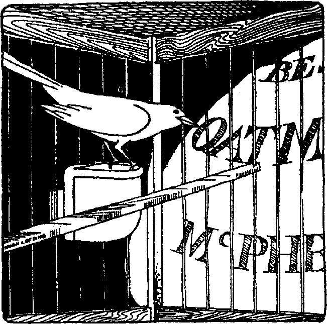 “我的笼子正好放在一袋燕麦旁边。我透过纸袋闻出了它的气味。当然,我一转眼就在纸袋上啄出个小洞,吃了那杂货商人一顶针那么多的燕麦。那个人让我们免费坐车,我却这样做,我觉得有点儿对不起他。不过我只吃了一丁点儿——谁也不会舍不得的——我已经二十四小时没有吃到过谷粒了。