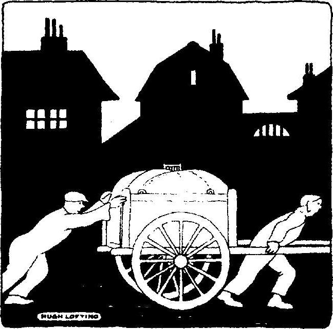 “推走我们那辆车的人显然匆匆忙忙,”第二天晚上,当医生和他那些动物安顿下来继续听故事时,皮皮内拉开始说,“天黑下来了,辎重车被一路推过颠簸的鹅卵石街道。