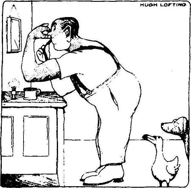 当呷呷和汪汪进来拿早餐托盘的时候,它们看见医生正在刮胡子。他对着镜子,捏住鼻子尖,叽里咕噜在自言自语:“这就是范蒂波邮局进行国外邮递的主意——我奇怪我原先为什么一点儿也没有想到。我将有天下第一快的国外邮递。这还用说!就是这个主意——燕子邮递!”