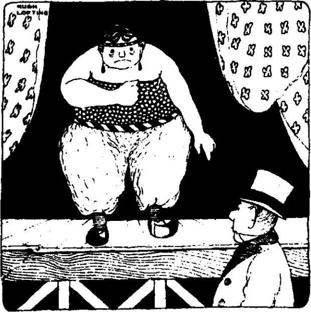 布洛塞姆很失望,但也只好听医生的。接下来让几只动物高兴的是,他建议带医生在马戏团里走走,向他介绍不同的表演者。因此,等“你推我拉”在它的新家被安顿好,医生亲眼看到给了它干草、水和睡觉的草以后,泥潭镇来的一伙儿就在那伟大的亚历山大·布洛塞姆老板引导下参观了马戏团。
