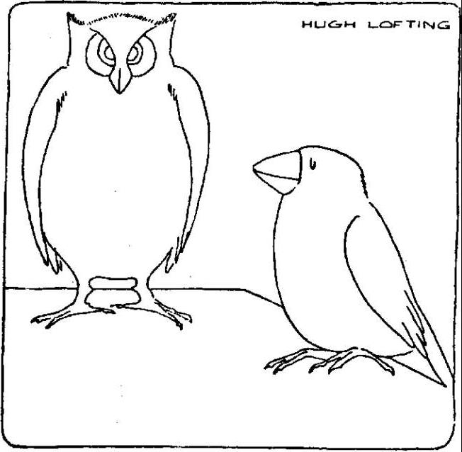 于是,医生点起了烟斗(烟草罐是奇奇从壁炉台上拿下来的),开始从头讲他的旅行故事。这是一个奇特的场面——餐厅的长桌子周围全是竖起了耳朵谛听的脸——动物的脸和人的脸。据我所知,医生的一大家子从来没有像今天这样齐过:蹦波、马修·马格、我、呷呷、嘎布嘎布、奇奇、波利尼西亚、汪汪、吐吐、托比、斯威兹尔、小白鼠。在他正要开口讲话的时候,窗户上响起了笃笃声,一个声音说: