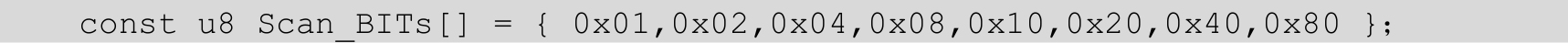 此外,还可以使用0x80>>i和~(0x80>>i),其差别是扫描顺序刚好相反。