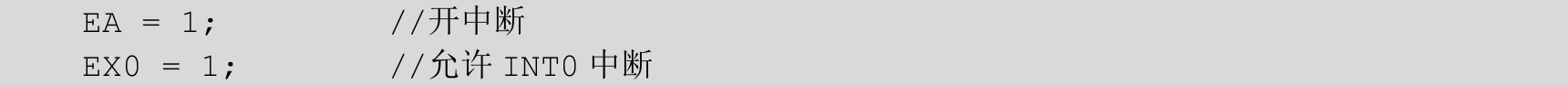 在本案例仿真电路中,计数按键连接单片机P3.2引脚(INT0),主程序设置IEI0x81(10000001),并设置EA=1(开中断)、EX0=1(允许INT0中断)。IE=0x81可以用以下语句代替: