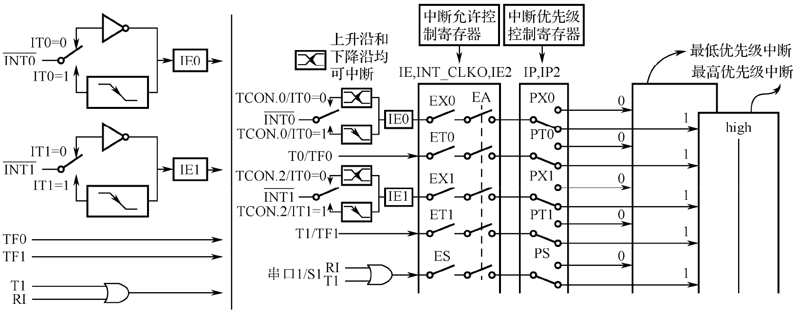 图3-13 传统型8051单片机中断源与STC15中断源(部分)