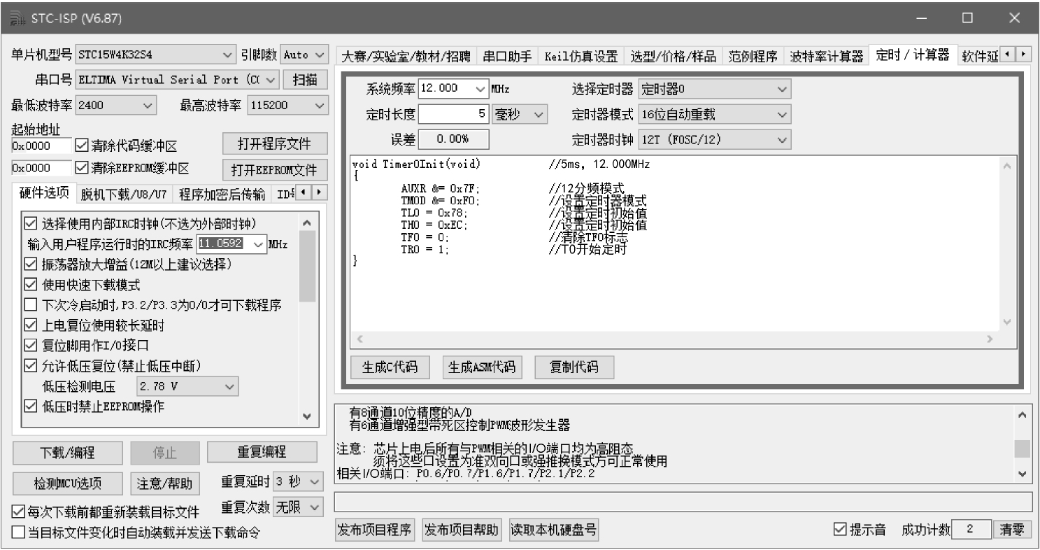 图3-17 使用STC-ISP工具生成定时器初始化代码