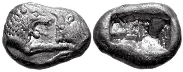 在克洛伊索斯执政时期(约前560—前547年),吕底亚人开始打造纯金和纯银的铸币,这种被称为Stater的铸币的图案是一头狮子和一头公牛的前半身,被西方普遍认为是世上最早的金币和银币。吕底亚出现货币后,古希腊城邦及波斯、马其顿帝国等受其影响,也在公元前6至公元前5世纪前后出现了金银铸币,这是西方货币体系的源头。