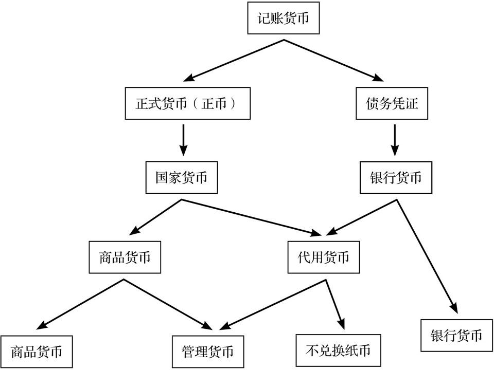 上述货币形式、货币概念及其相互关系可以用下列图解表示: